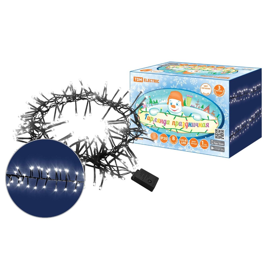 Гирлянда светодиодная Мишура" 3 м, 320LED, белый, 8 режимов, 250 В, IP20, TDM